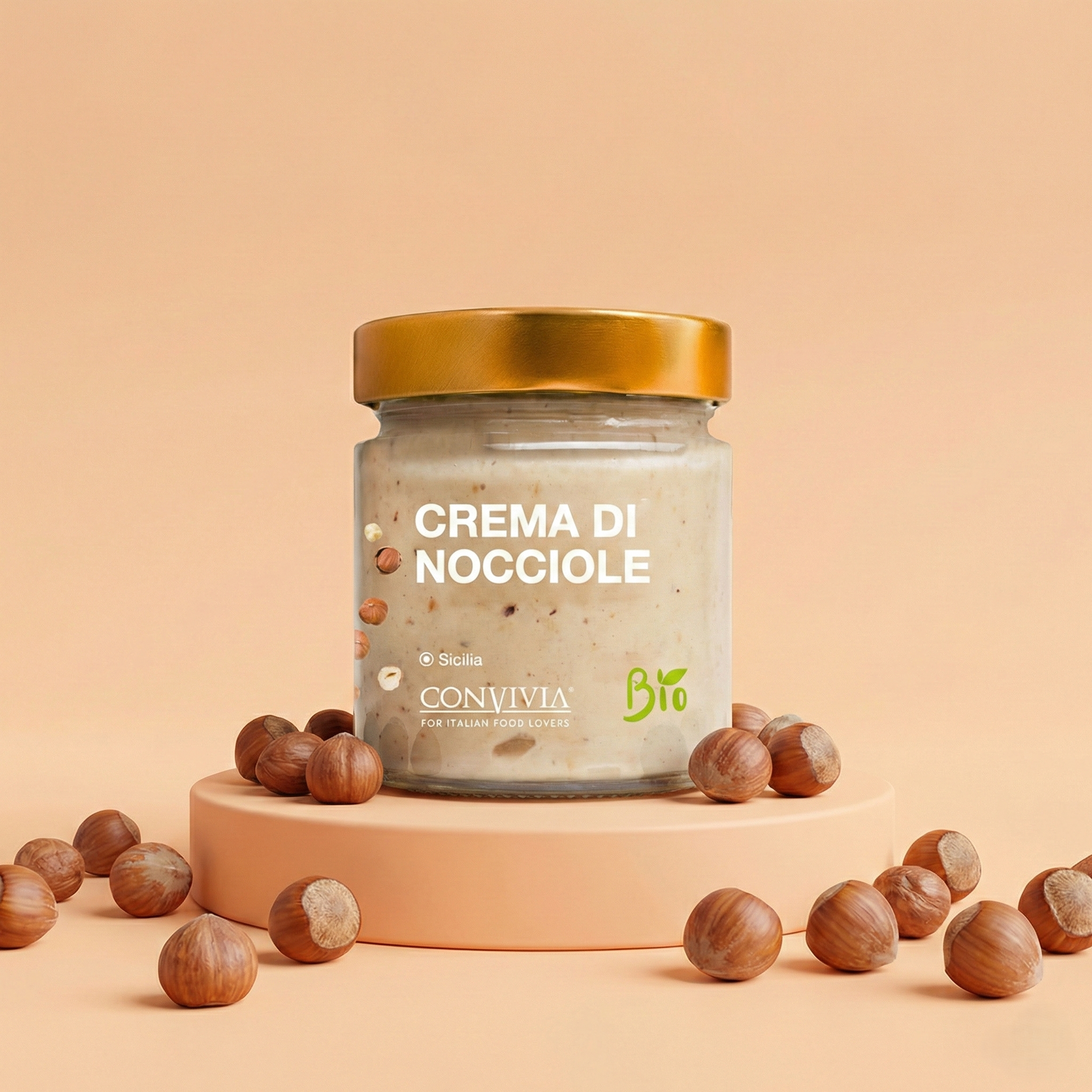 Crema dolce da spalmare. Ideale per farcire dolci o da spalmare su fette di pane. Con 38% di nocciole bio. Biologico, senza glutine e vegano. Senza conservanti